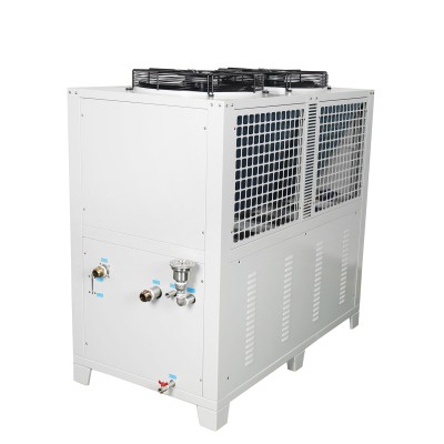 1.冷水機是一種是由制冷系統(tǒng),水路系統(tǒng),電氣系統(tǒng)三大組成部分,核心為制冷系統(tǒng),制冷系統(tǒng)是由壓縮機、蒸發(fā)器、冷凝器、膨脹閥所組成的制冷設備。水路系統(tǒng)由水泵管路和相關閥門組件構成。電氣系統(tǒng)由溫度控制器和電氣元器件構成。風冷箱體式冷水機是因為其冷凝器(散熱器)為翅片式,通過一個或者多個外轉子風機與環(huán)境進行散熱的冷水機。